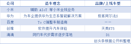 创头条统计,截至目前参与造车新势力的大厂和头部企业已经多达近20家。