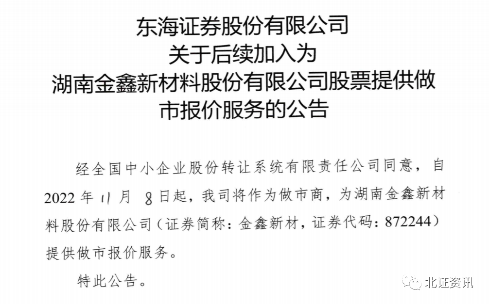 原标题: 券商发力追加做市业务,今年超六成新增标的满足北交所上市条件!混合做市值得期待 11月8日,新三板再添3起做市案例,国泰君安新增成为南华工业的做市商,东海证券则加码金鑫新材、美兰股份的做市业务。至此,今年以来新三板总共新增285起做市案...